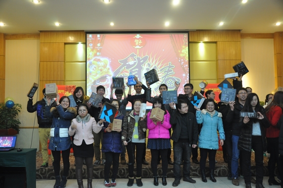 隨著年會接近尾聲,我們公平公正的評委組也選出了此次年會團隊表演前三甲和個人表演前三甲,并由王總親自頒獎。自此,長達一天的新年聯歡會也落下了帷幕。每個人都抽到了屬于自己的獎品,或大或小都已不重要,重要的是這種充滿激情、充滿活力的團隊,已將大家帶入了新的臺階。