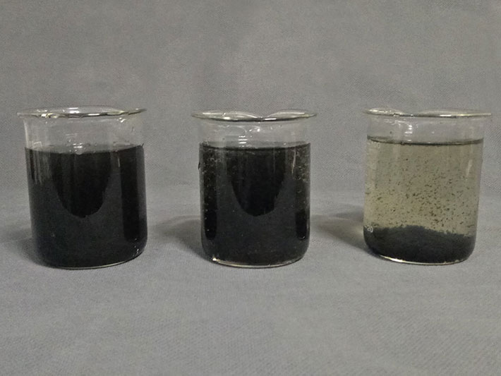 3. 觀察杯壁,若出現小顆粒絮團,則加入一定的聚丙烯酰胺溶液混凝即可;若杯壁未出現絮團則需要繼續添加破乳劑或PAC。