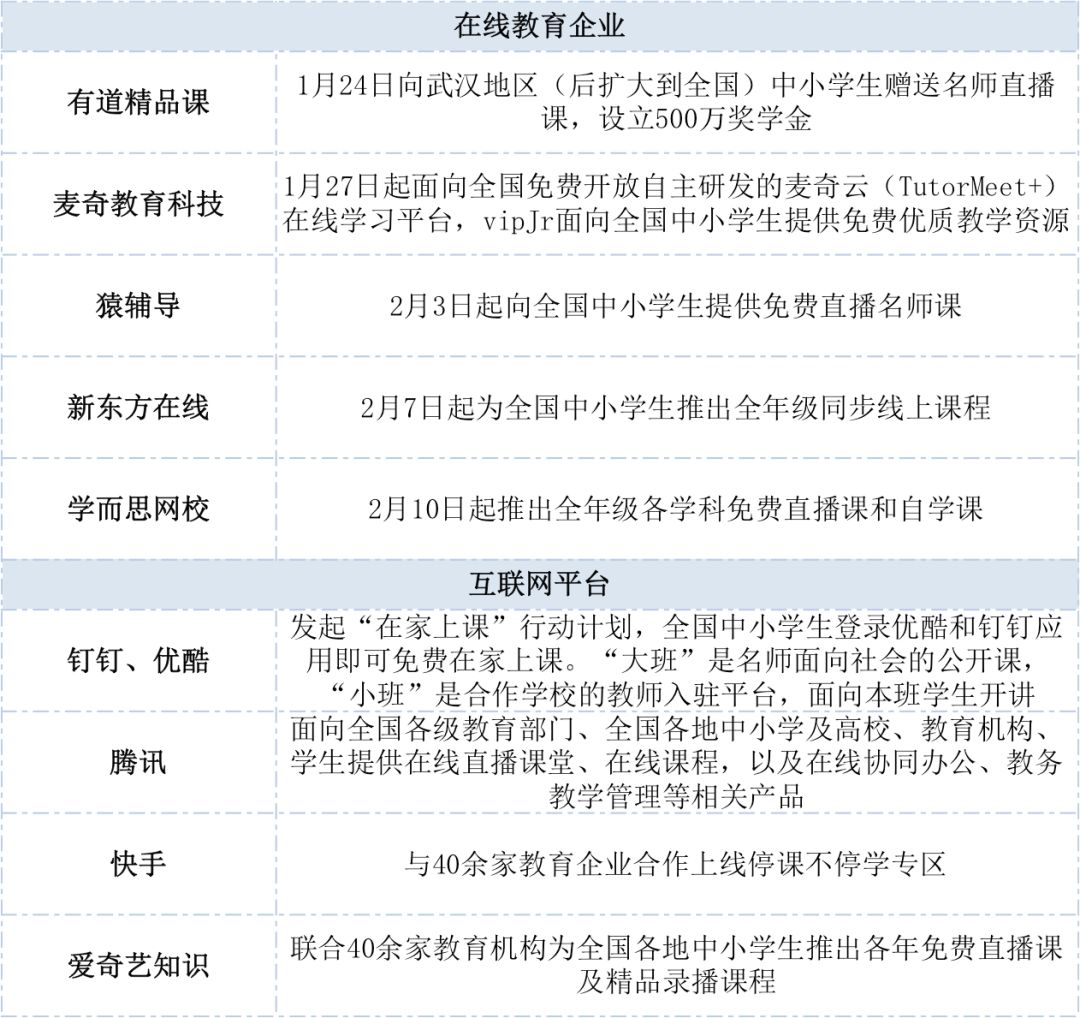 疫情期間在線教育相關企業推出的服務